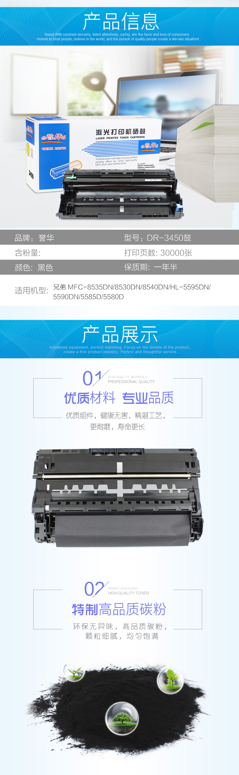 誉华DR-3450打印机硒鼓适用兄弟 MFC-8535DN/8530DN/8540DN等 黑色 自营