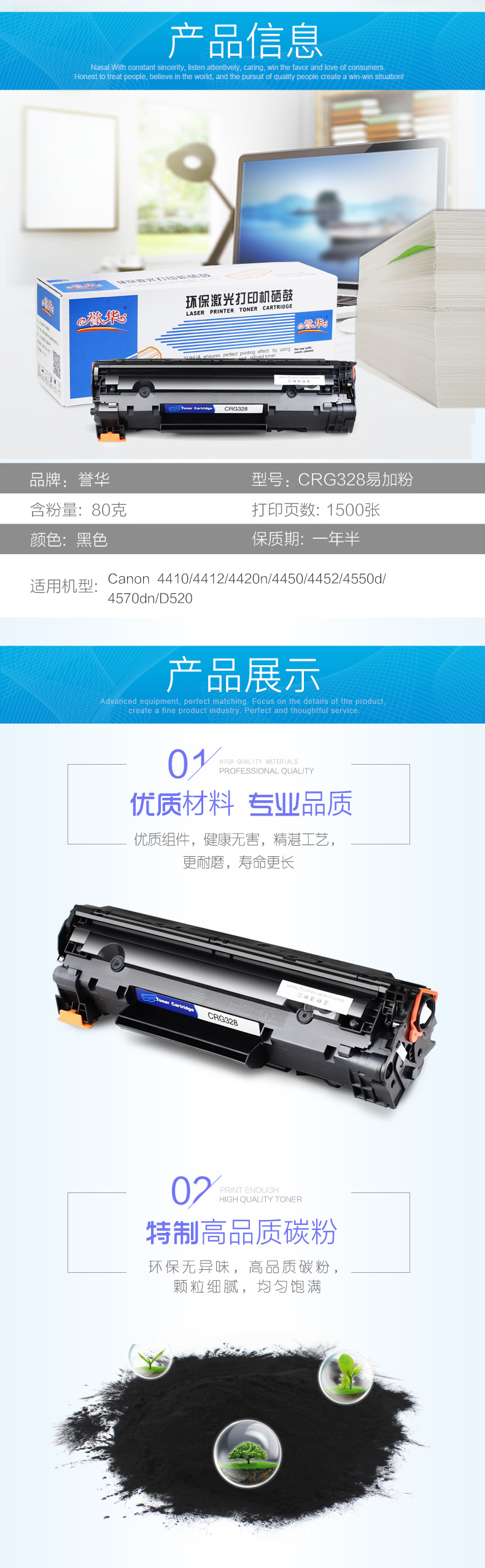 誉华CRG328易加粉Canon4410/4412/4420n/4450/4452打印硒鼓 黑色 自营