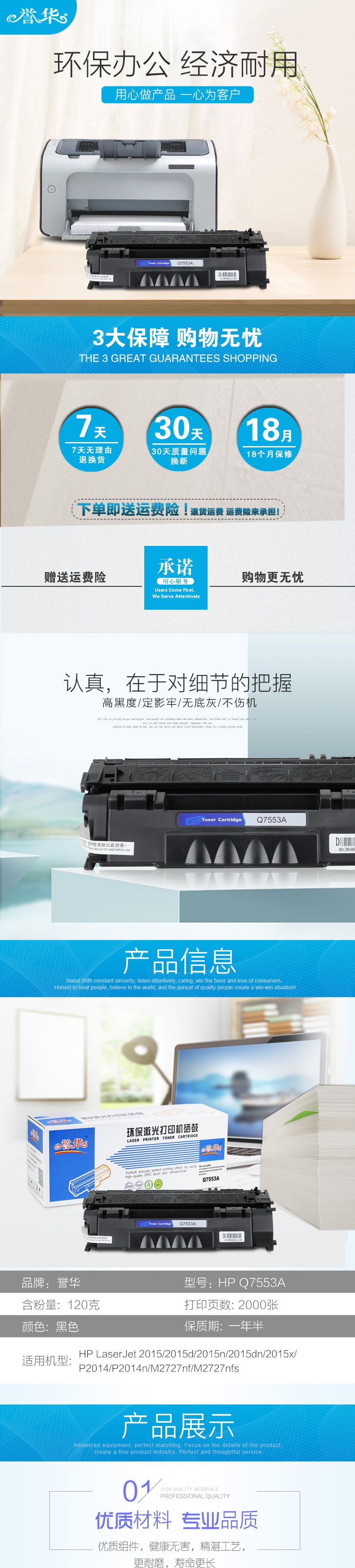 誉华打印机硒鼓黑色HP 7553A适用HP LaserJet 2015/2015d等 黑色 自营