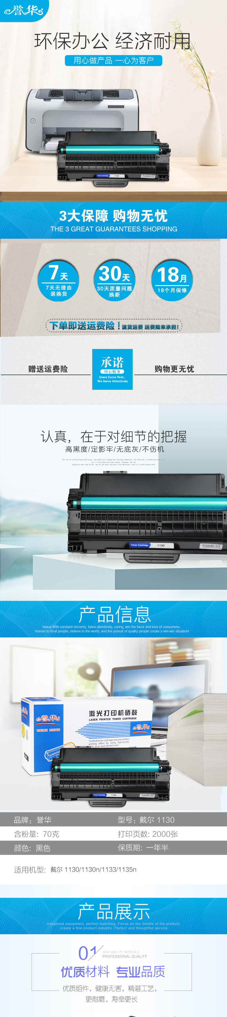 誉华硒鼓1130适用戴尔 1130/1130n/1133/1135n打印机耗材 黑色 自营