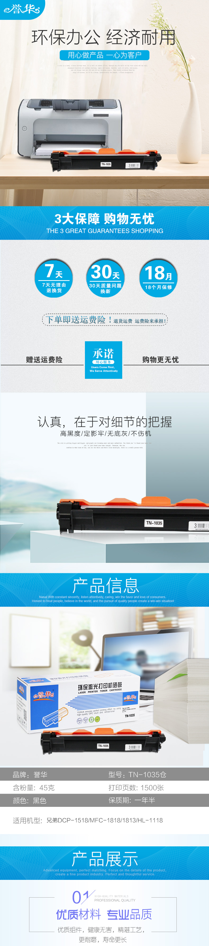 誉华TN1035粉仓适用兄弟DCP-1518/MFC-1818/1813/HL-1118 黑色 自营