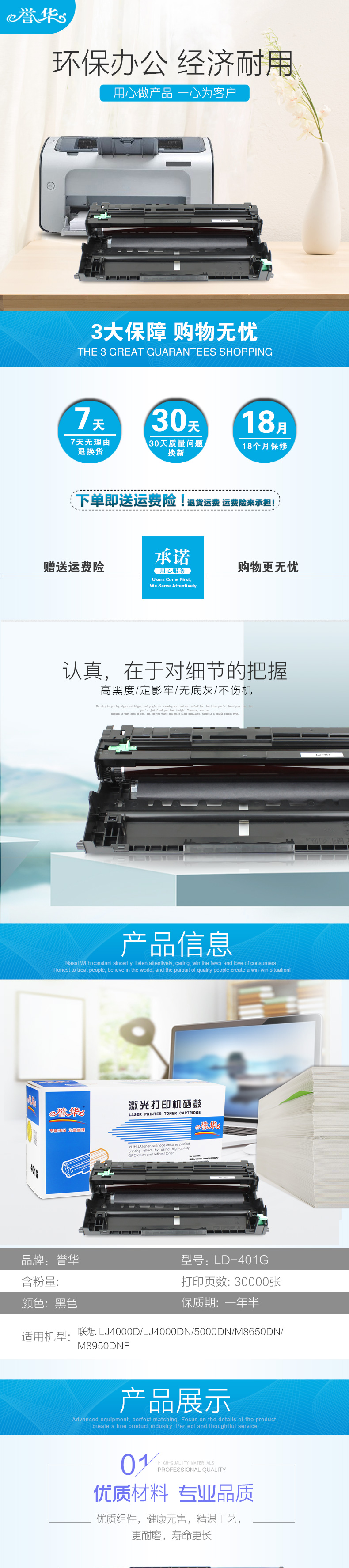 誉华LD401硒鼓 适用联想LJ4000D/LJ5000DN/M8650DN/M8950DN等 黑色 自营