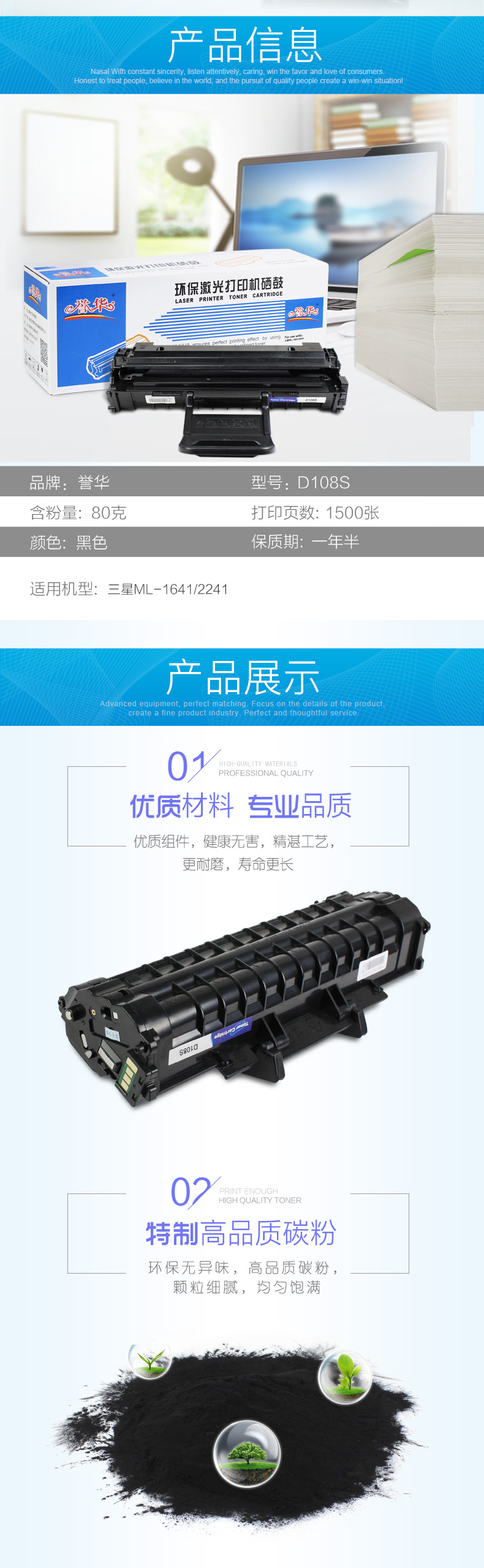 誉华硒鼓 D108S 适用机型 三星ML2241等打印耗材 黑色 自营