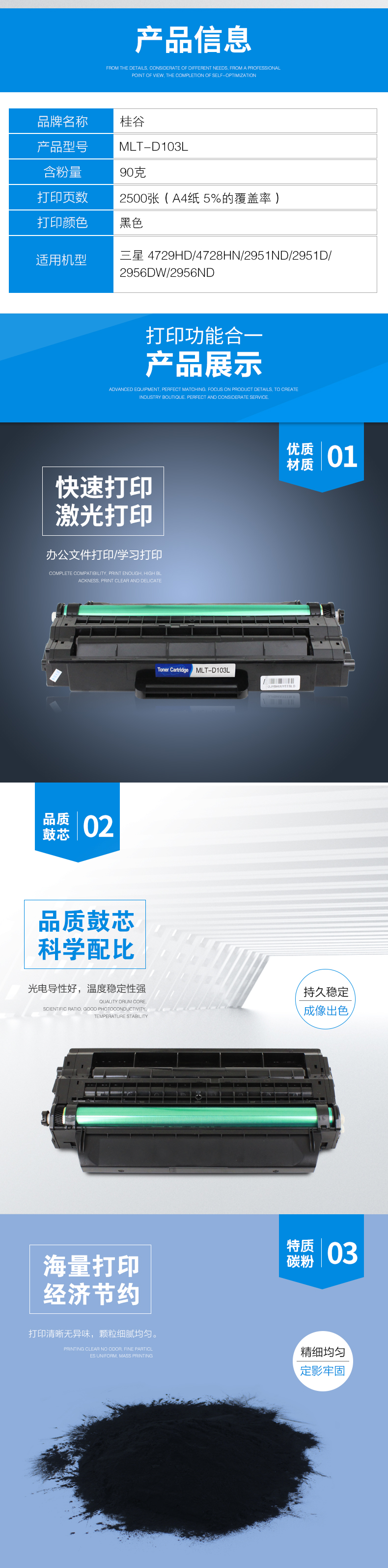 桂谷(GUIGU)打印机耗材MLT-D103L硒鼓适用三星4729HD/4728HN/2951N等黑色 黑色 自营