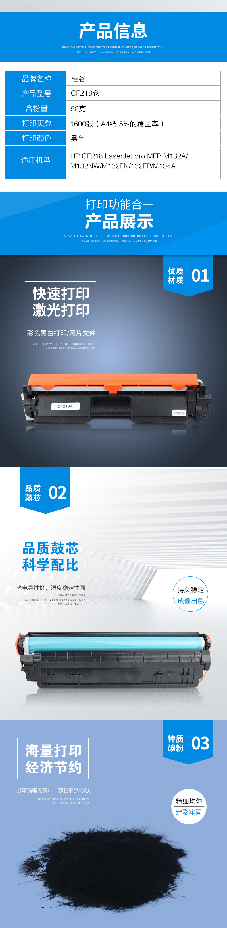 桂谷(GUIGU)CF218A打印机硒鼓适用HP LaserJet pro MFP M132等 黑色 黑色 自营