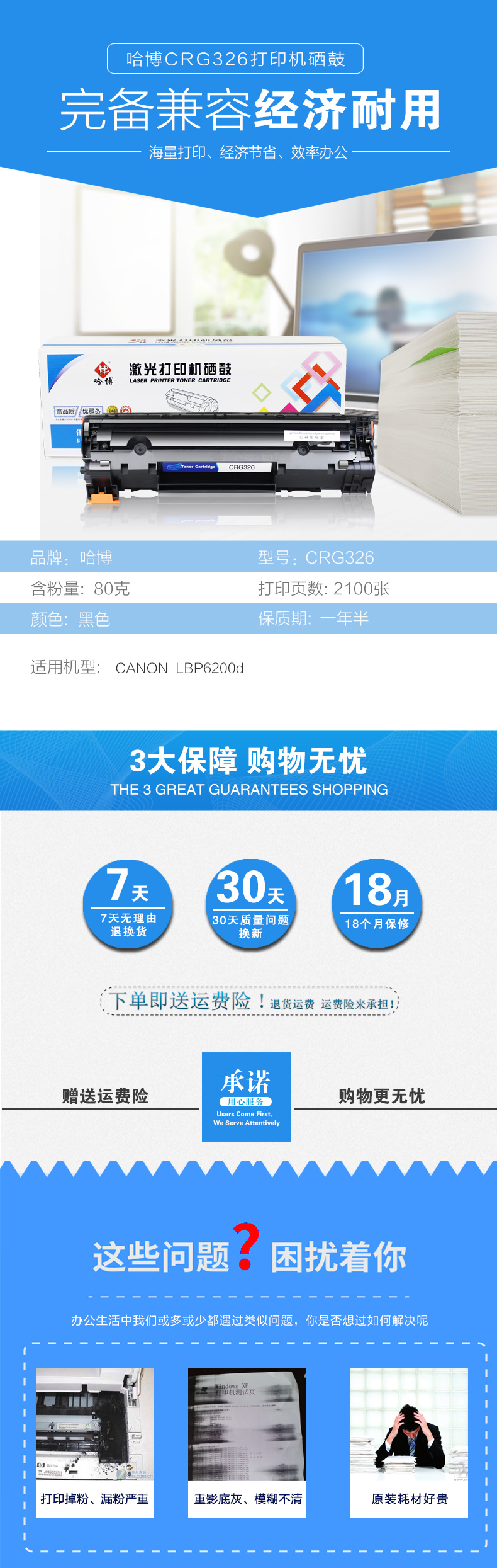 哈博CRG326易加粉适用CANON LBP6200d打印机硒鼓 黑色 自营