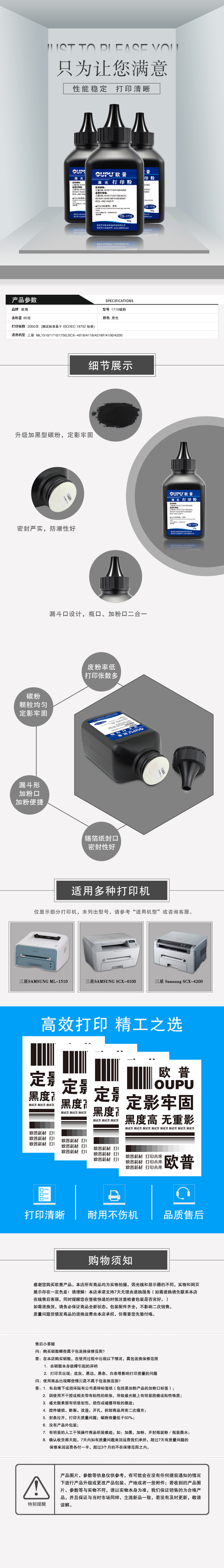 欧普(oupu)碳粉单支只装1710碳粉适用三星ML1510/1710/1750/SCX-4016等打印机墨粉 黑色 自营