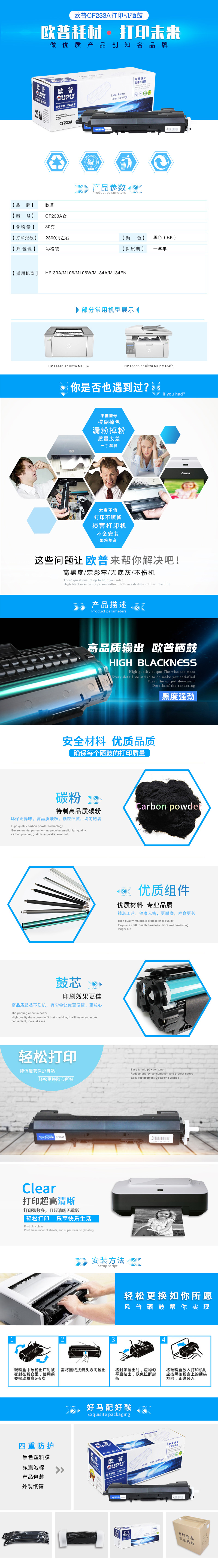 欧普(oupu)CF233粉仓 适用HP33A/M106/M106W/M134A/M134FN 自营