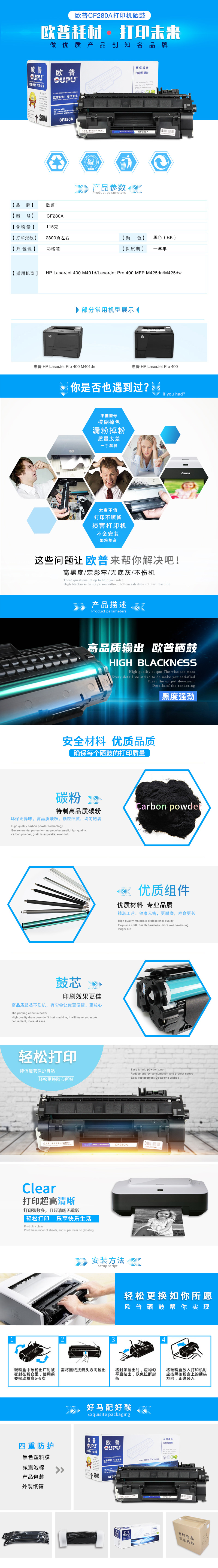 欧普(oupu)CF280A硒鼓适用HP LaserJet 400 M401d/LaserJet Pro 400 MFP M425dn/M425dw 自营