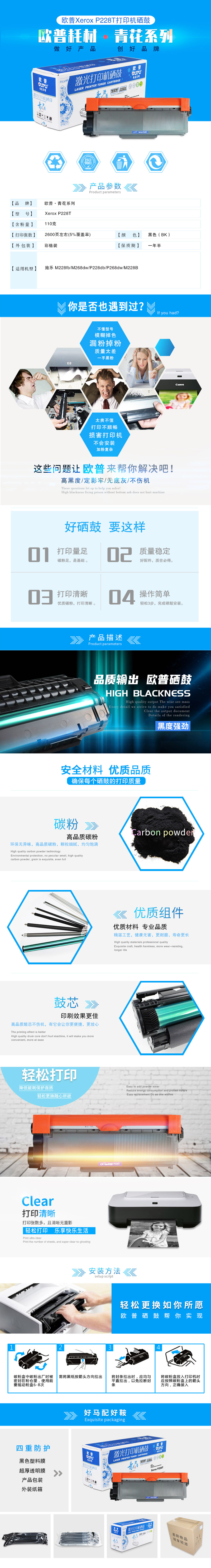 欧普(oupu)青花系列施乐CT202332打印机粉仓适用施乐 M228fb联想2451兄弟2350 黑色 自营