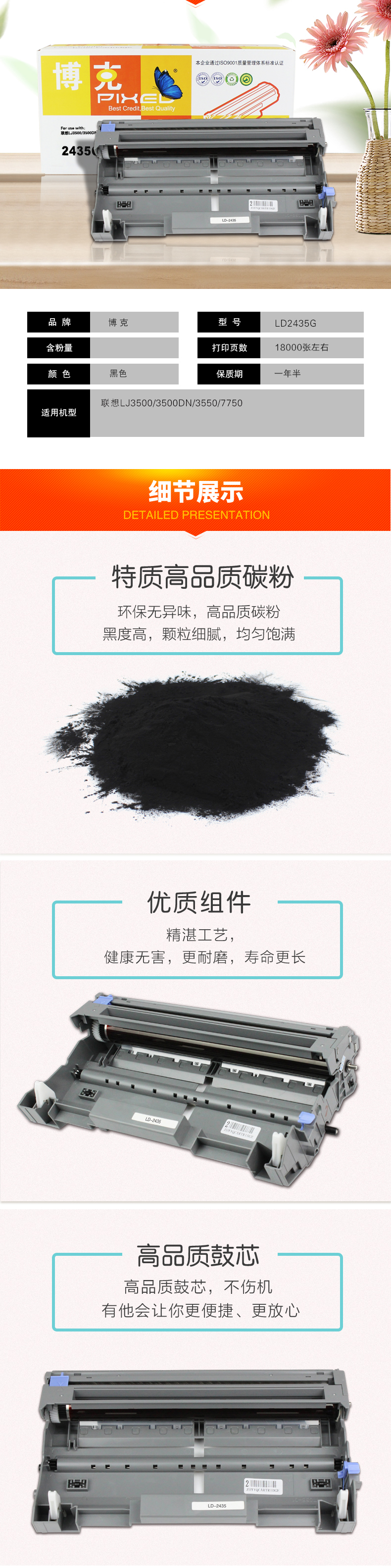 博克(PIXEL)LD2435打印机硒鼓适用联想LJ3500/3500DN/3550/7750 黑色 自营
