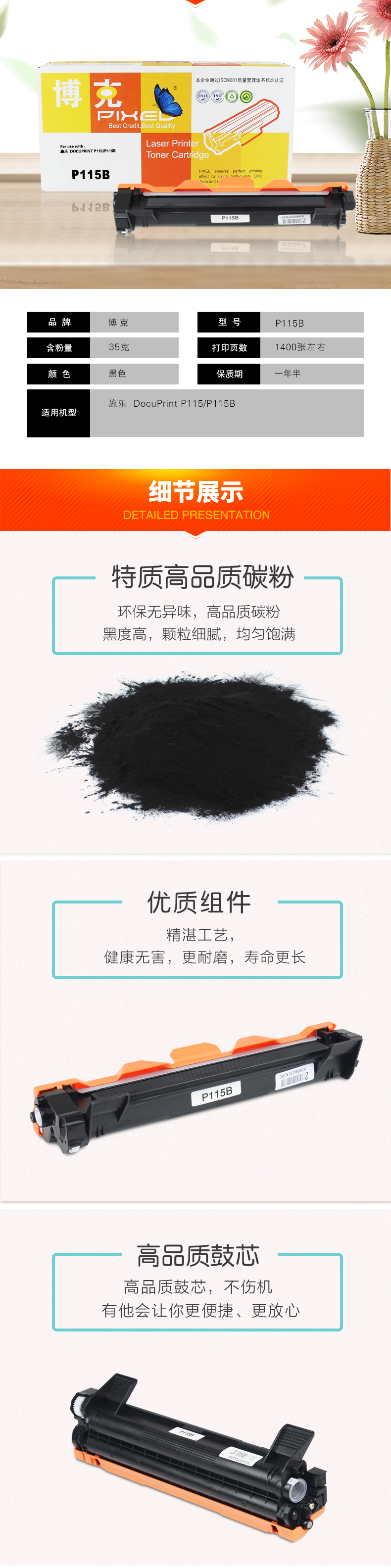 博克(PIXED)施乐P115粉仓适用富士施乐P115 P115b打印机粉盒 黑色 自营