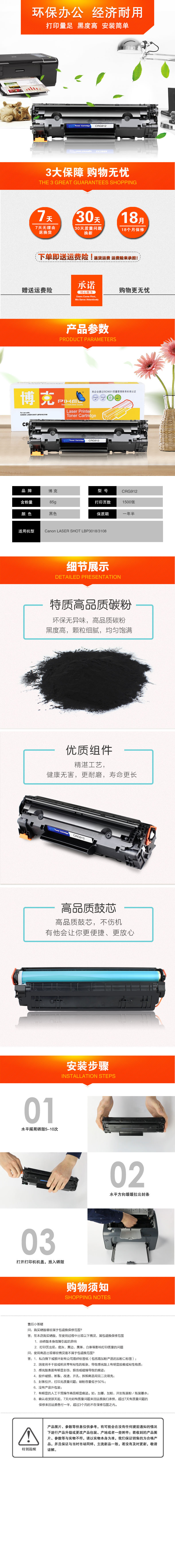 博克(PIXEL)硒鼓 CRG912适用于Canon LASER SHOT LBP3018/3108打印耗材 黑色 自营