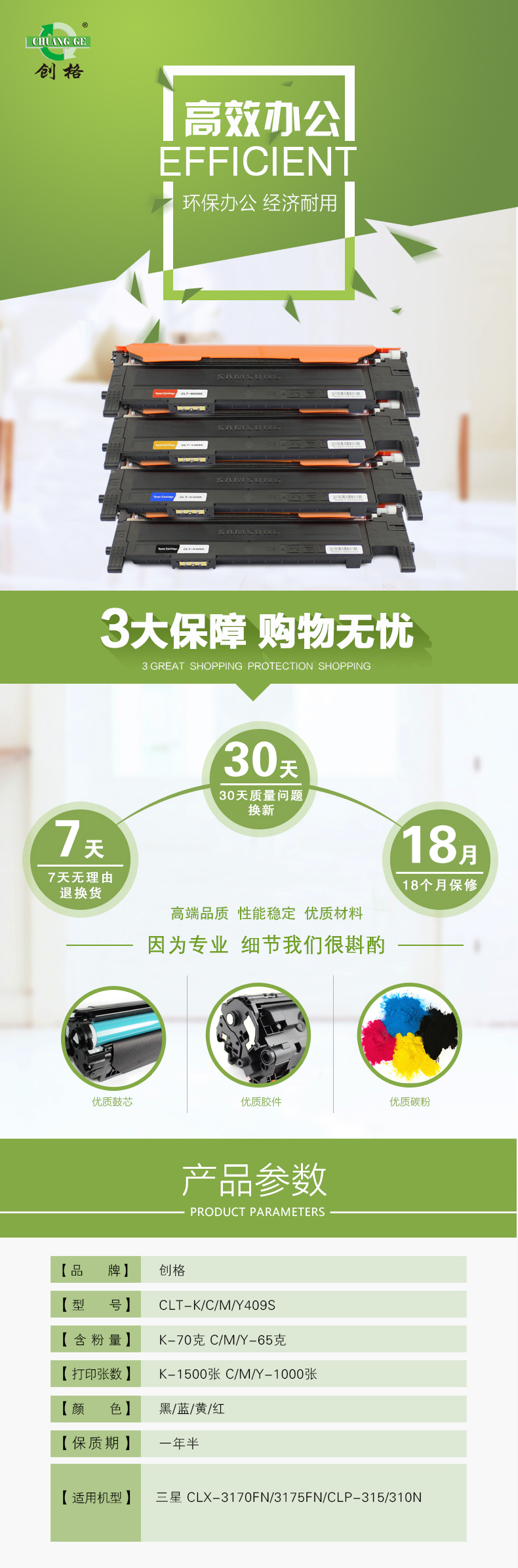 创格(CHUANG GE) 彩色硒鼓CLT-K/C/M/Y409S 适用三星 CLX-3170FN/3175FN等 彩色套装 自营