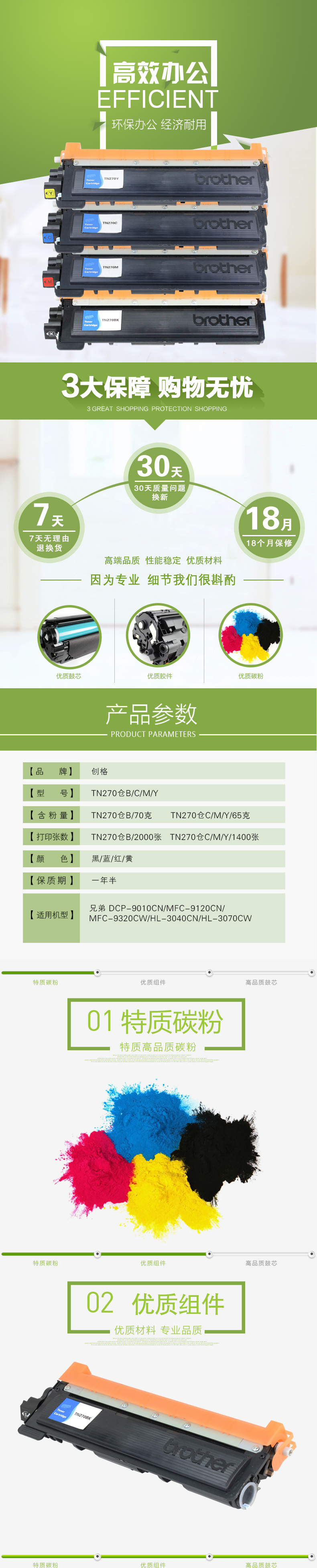创格(CHUANG GE)彩色粉仓TN270BK/C/M/Y适用兄弟DCP-9010CN/MFC-9120CN 红色 自营