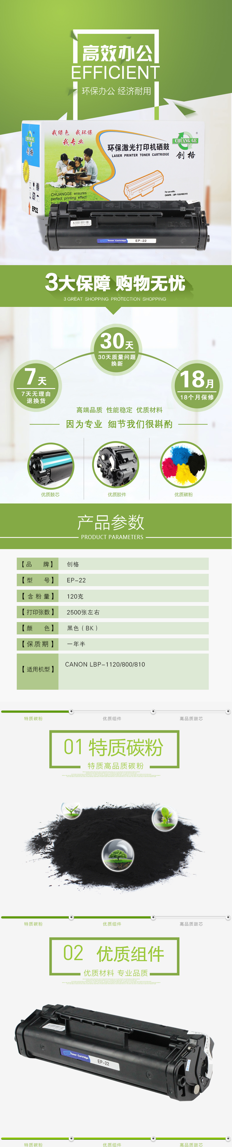 创格(CHUANG GE)打印机耗材单只硒鼓黑色EP-22适用CANON LBP-1120/800/810 黑色 自营