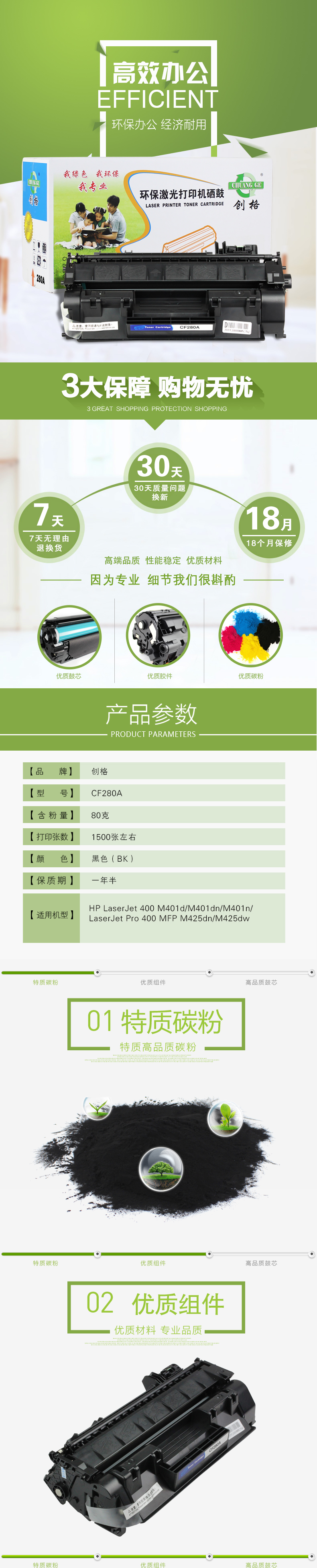 创格(CHUANG GE)CF280A黑色单只硒鼓适用 400 M401d/M401dn/M401n等 黑色 自营