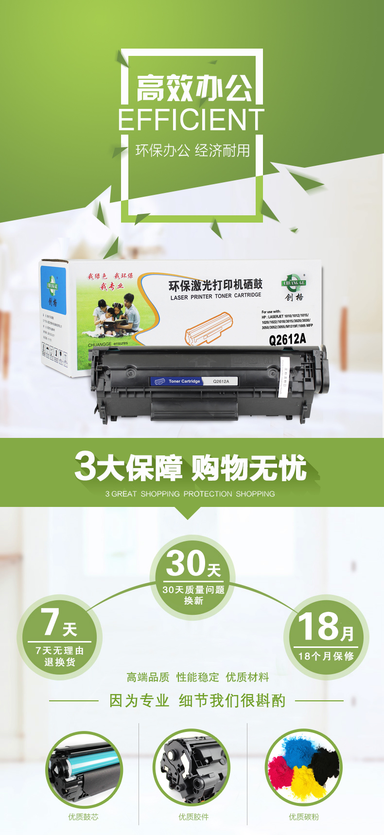 创格HP Q2612打印机硒鼓适用HP LaserJet 1010/1012等 黑色 自营