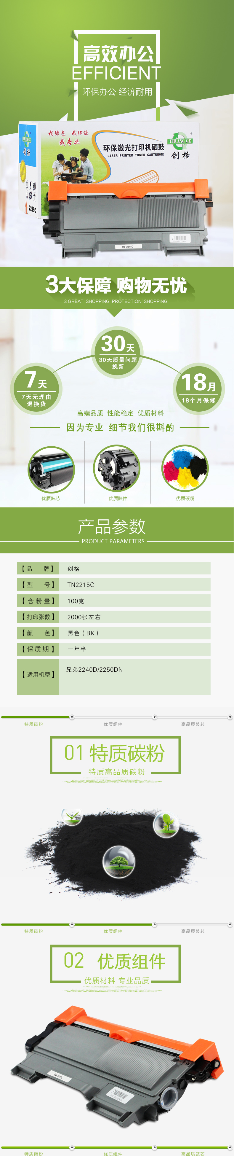 创格(CHUANG GE)打印机粉仓TN-2215适用兄弟2240D/2250DN 黑色 自营