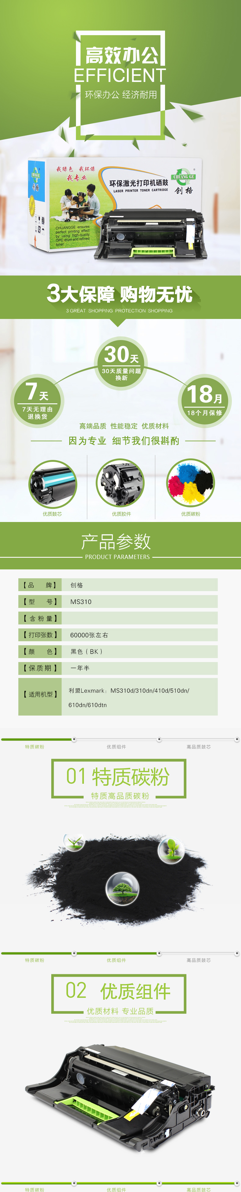创格(CHUANG GE)打印机硒鼓利盟MS310适用利盟Lexmark-MS310/410/510/610等 黑色 自营