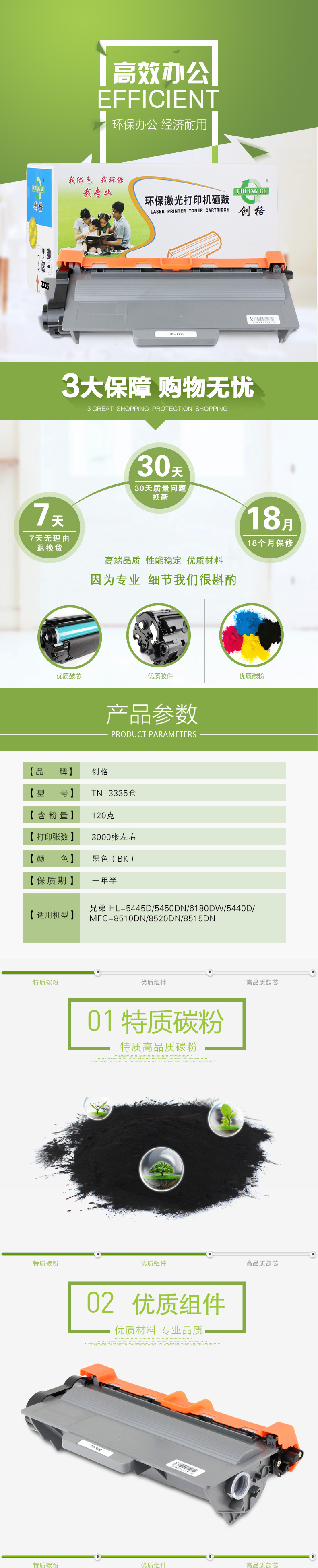 创格(CHUANG GE)打印机硒鼓TN-3335仓适用兄弟 HL-5445D/5450DN等 黑色 黑色 自营