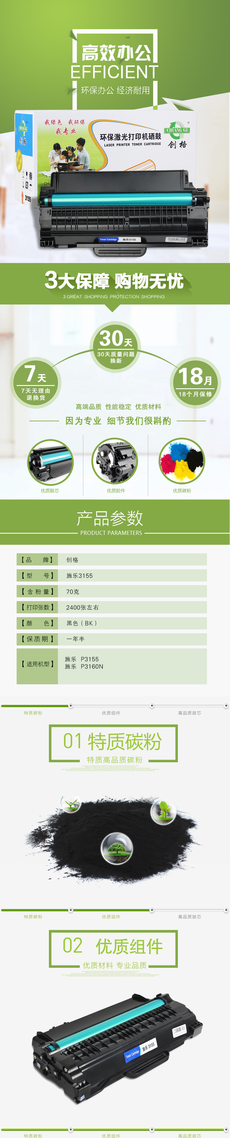 创格(CHUANG GE)施乐3155打印机耗材单只黑色硒鼓适用施乐 P3155/P3160N 黑色 自营
