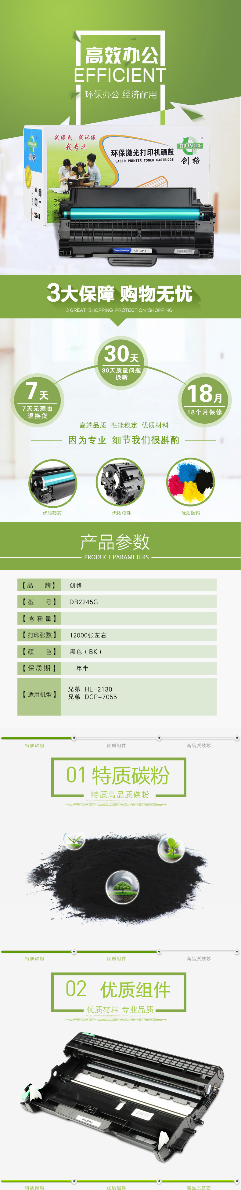 创格(CHUANG GE)打印机硒鼓DR2245适用兄弟 HL-2130/DCP-7055耗材 黑色 自营