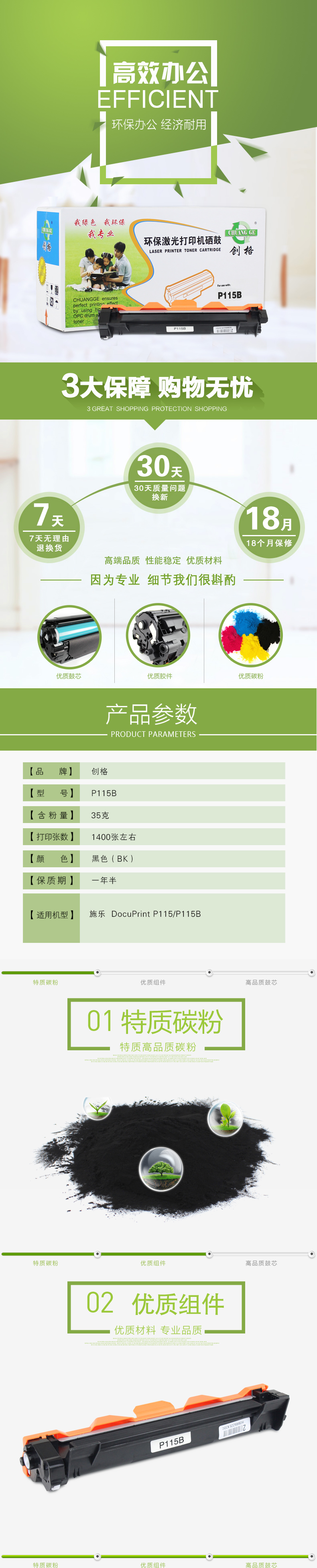 创格(CHUANG GE)施乐P115粉仓适用富士施乐P115 P115b打印机粉盒 黑色 自营
