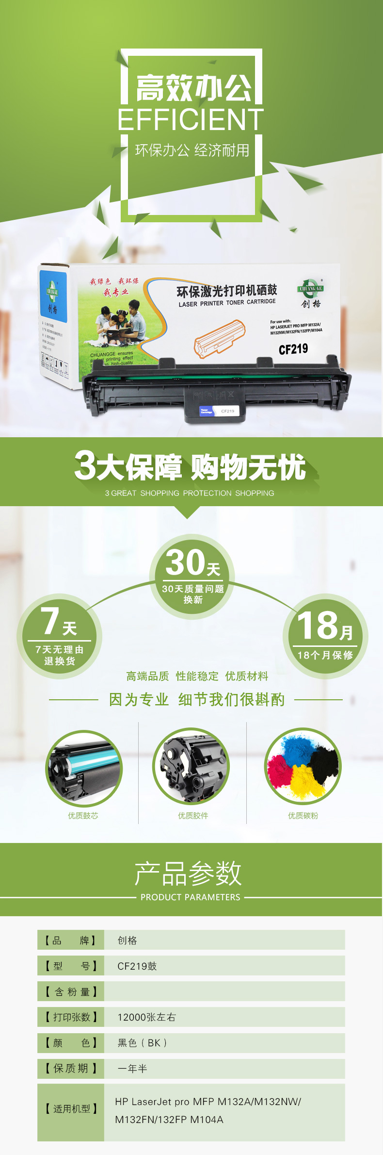 创格(CHUANG GE)CF219打印机硒鼓适用HP LaserJet pro MFP M132等 黑色 自营