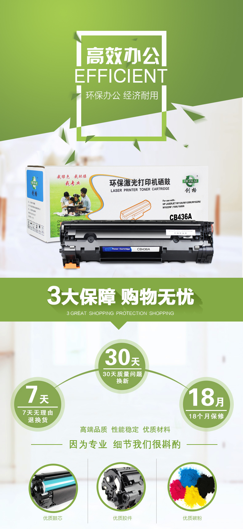创格(CHUANG GE)CB436A易加粉打印机硒鼓适用M1120/M1120N/M1522n/ 等 黑色 自营