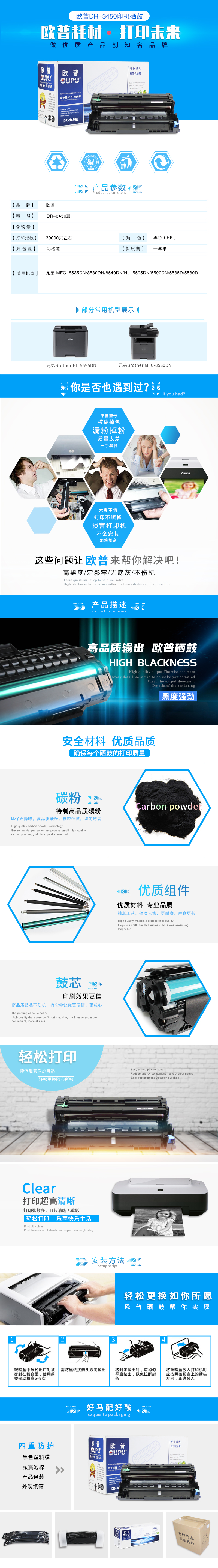 欧普(oupu)DR3450硒鼓适用兄弟 MFC-8535DN/8530DN/8540DN/HL-5595DN/5590DN/5585D/5580D 自营