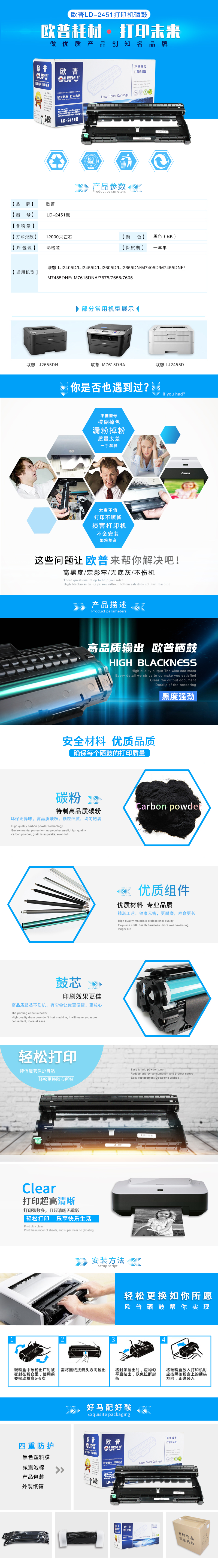 欧普(oupu)LD2451硒鼓适用联想 2405D/2455D/2605D/2655DN/M7405D/M7455DNF/7675/7655/7605/7650 自营