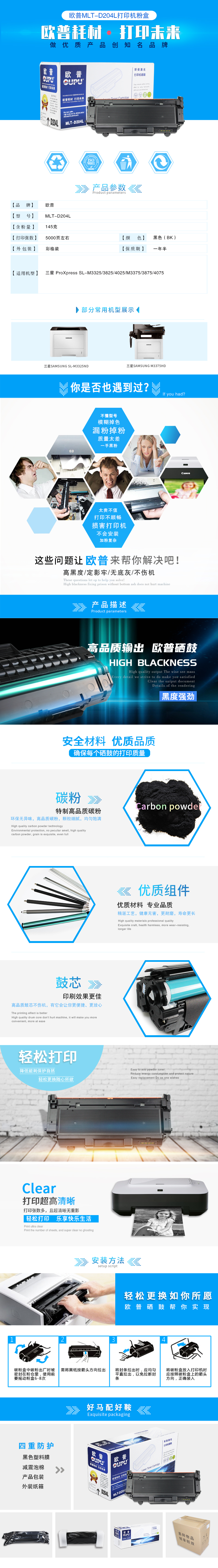 欧普(oupu)打印机硒鼓MLT-D204L仓适用三星ProXpress SL-M3325等 自营