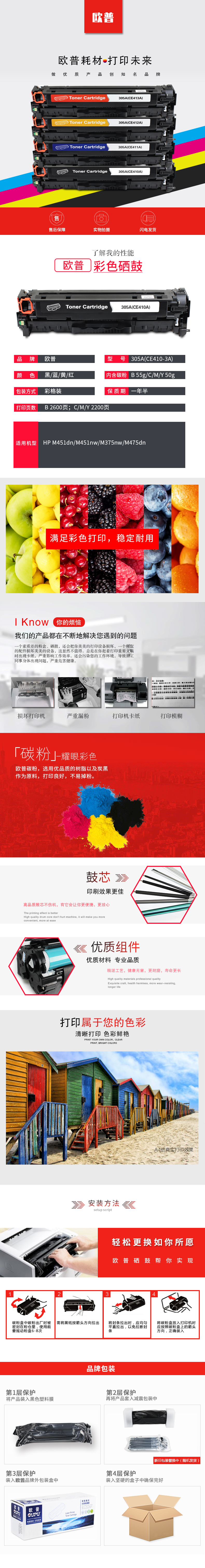 欧普(oupu)305A硒鼓 CE411A蓝色适用HP M451dn/M451nw/M375nw/M475dn 自营