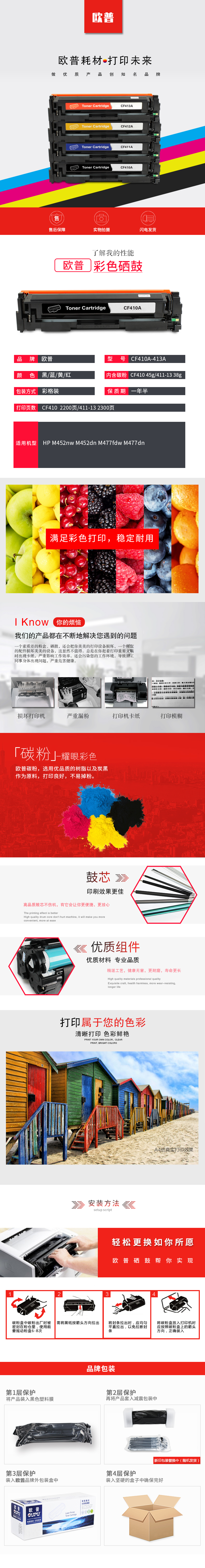 欧普(oupu)CF410-413A硒鼓 彩色套装 适用HP M452nw/M452dn/M477fdw/M477dn 自营