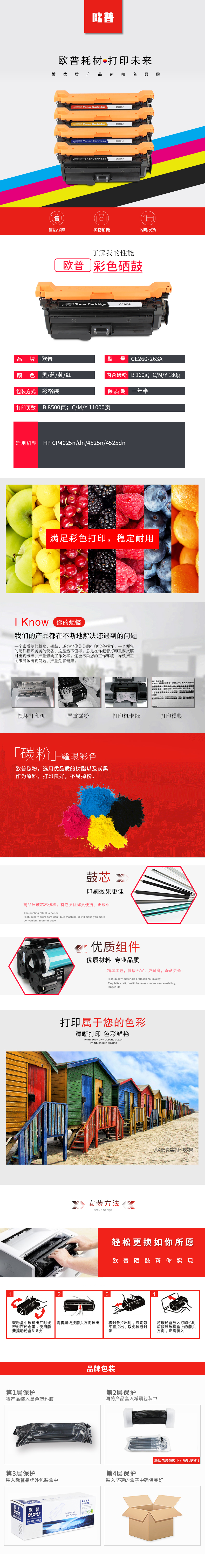 欧普(oupu)260A硒鼓黑色适用HP CP4025n/dn/4525n/4525dn 自营