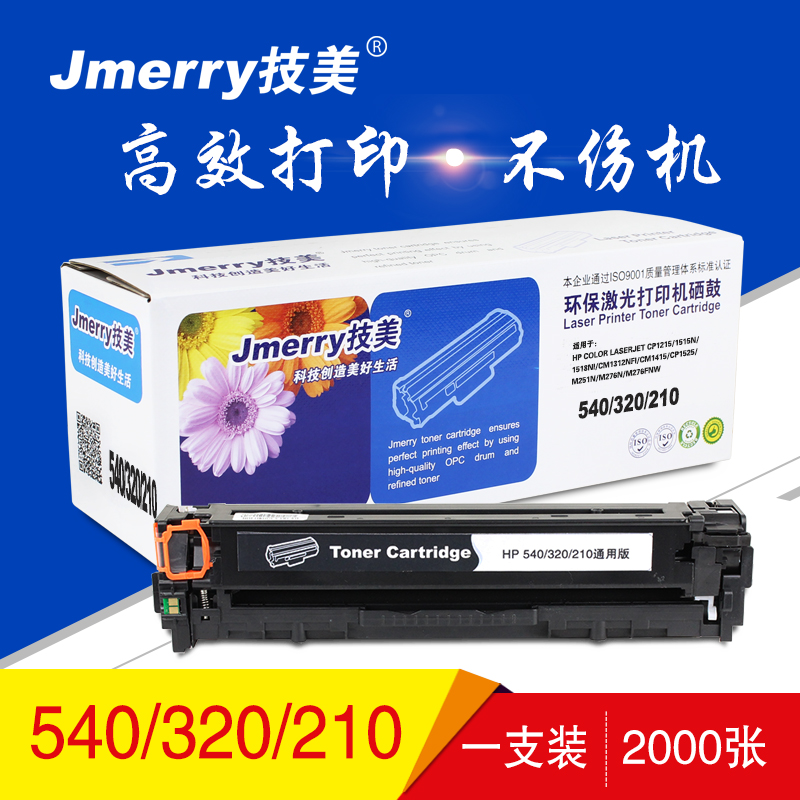 技美(Jmerry)彩色硒鼓HP CB540-43A(CE320-323A/CF210-213A)通用版 黑色 自营