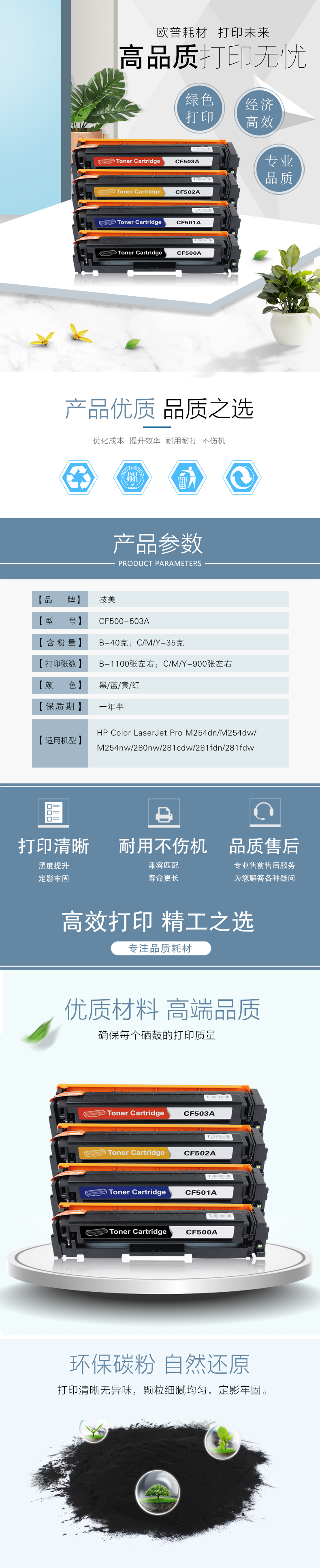 技美(Jmerry)打印机耗材彩色硒鼓CF500-503A适用HPM254d/M280nw/M281等 蓝色 自营