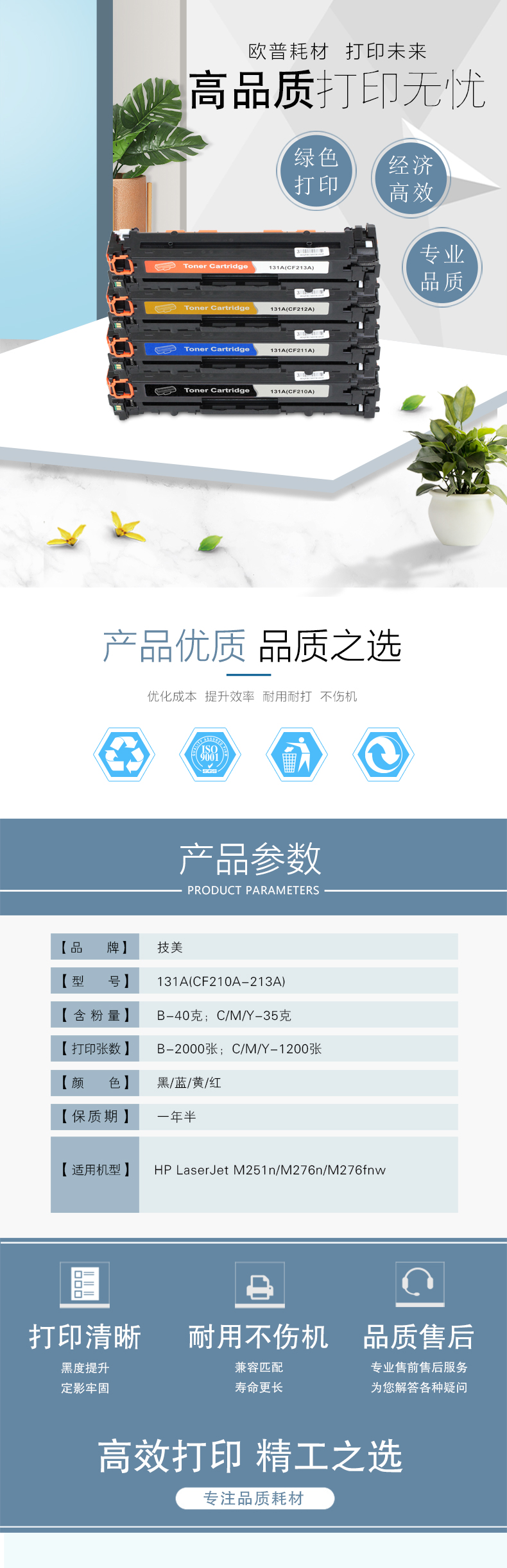 技美(Jmerry)彩色打印机硒鼓HP131A(CF210A-13A)适用251n/276n/276fnw等 蓝色 自营