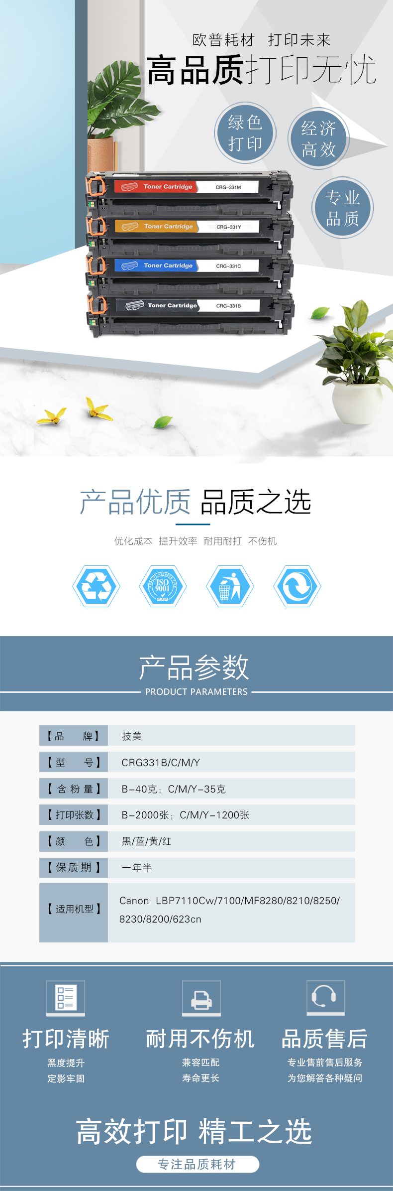 技美(Jmerry)彩色硒鼓佳能CRG-331C/M/Y适用Canon LBP7110Cw/7100 蓝色 自营