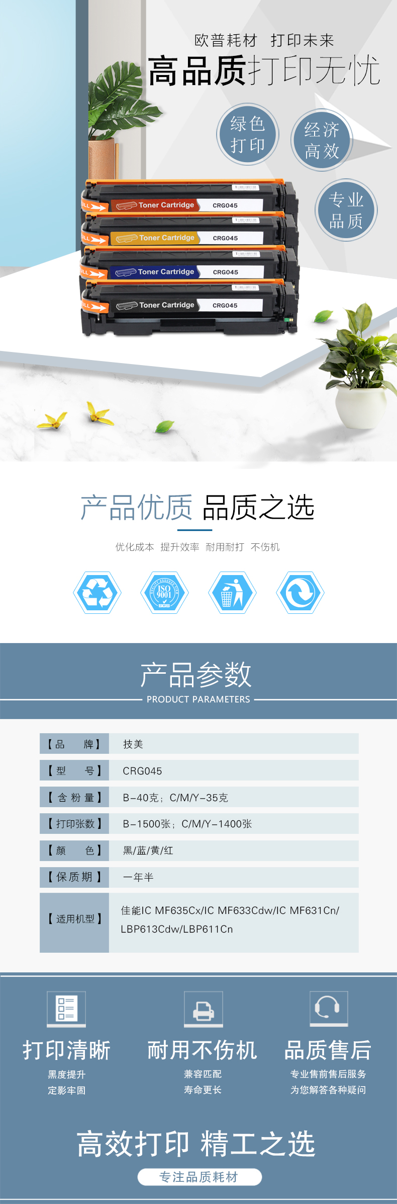 技美(Jmerry)打印机耗材彩色硒鼓CRG045适用佳能ICMF635CxiICMF633Cdw等 彩色套装 自营