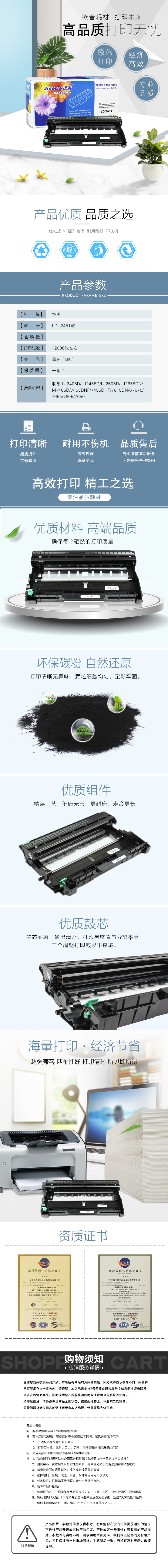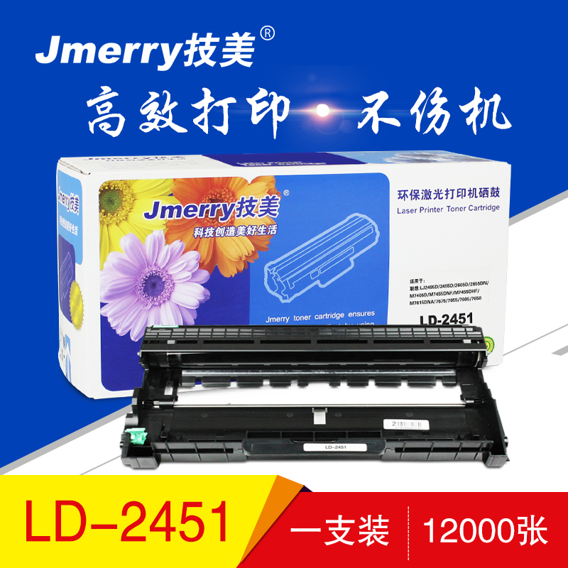 技美(Jmerry)LD-2451鼓架 打印耗材 适用联想 LJ2405D/LJ2455D/LJ2605D等 黑色 不含粉仓 自营