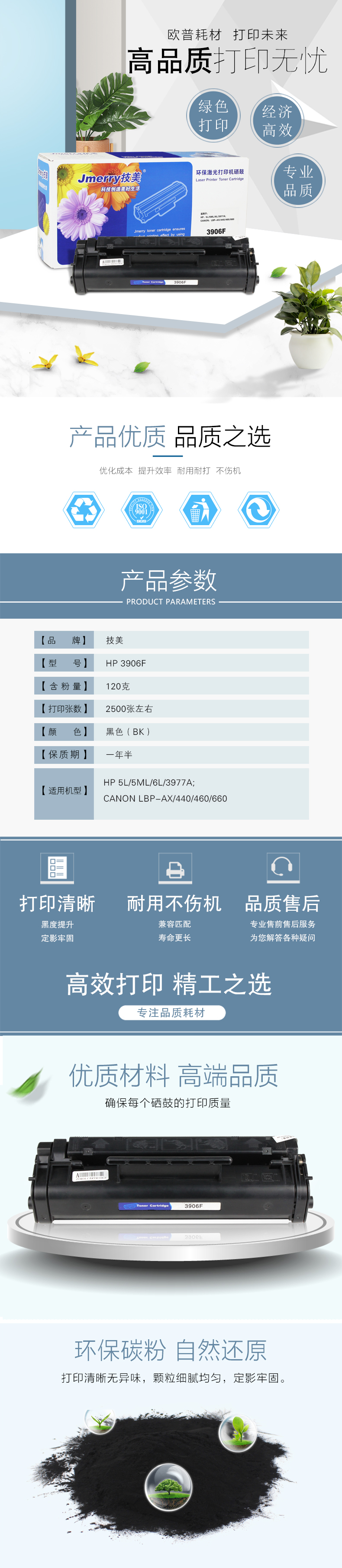 技美(Jmerry)HP 3906F硒鼓黑色适用HP 5L/5ML/6L/3977A等打印机 黑色 自营