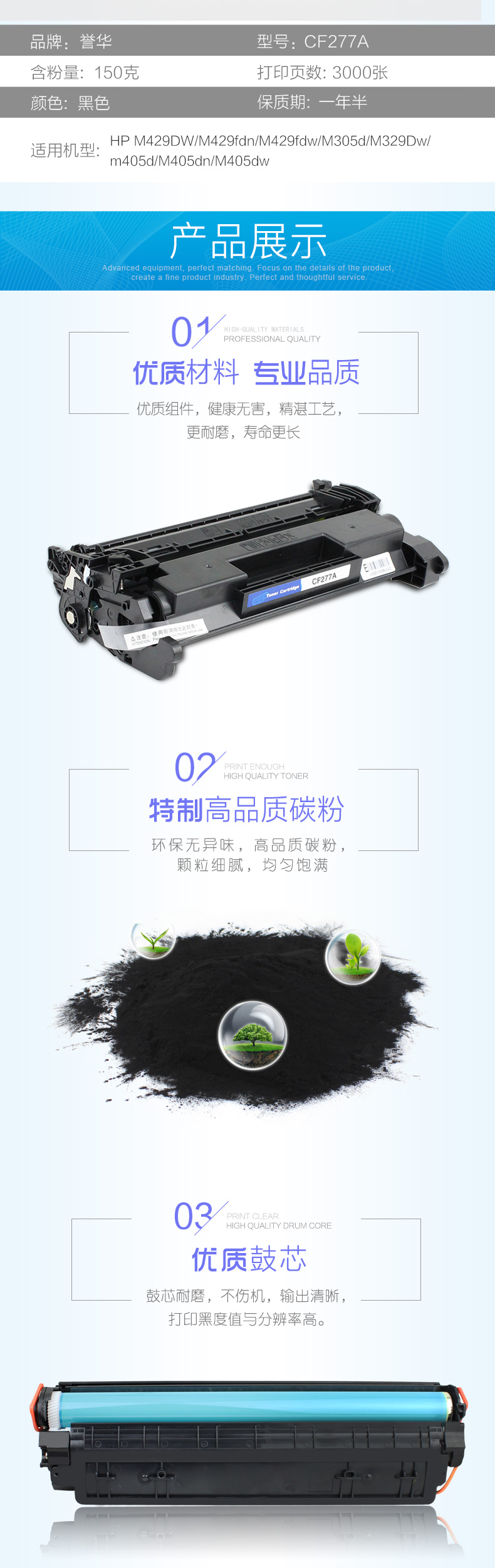 誉华打印机硒鼓黑色HP CF277A适用HP M429/305d/329Dw/405等 黑色 自营