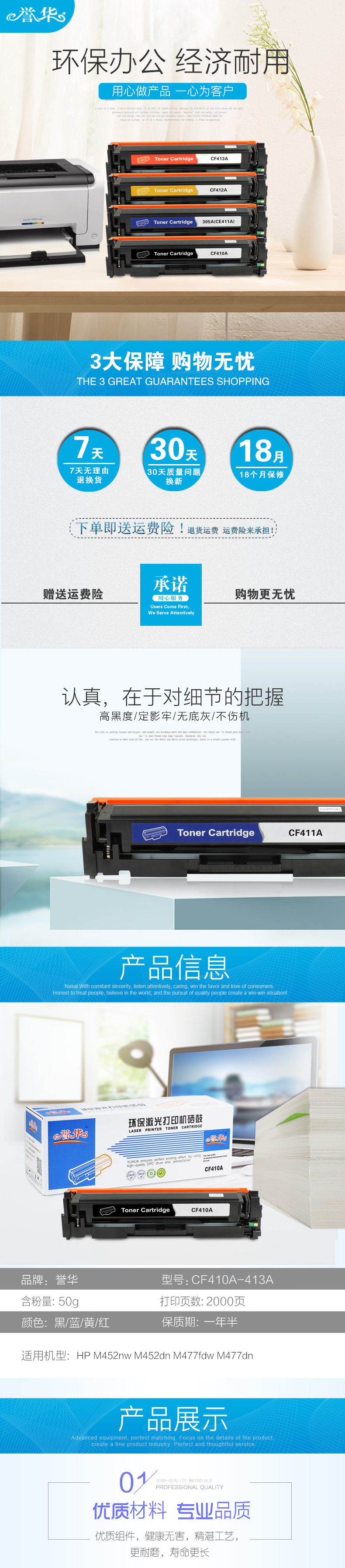 誉华彩色硒鼓CF410A适用HP M452nw/M452dn/M477fdw等 黑色 自营