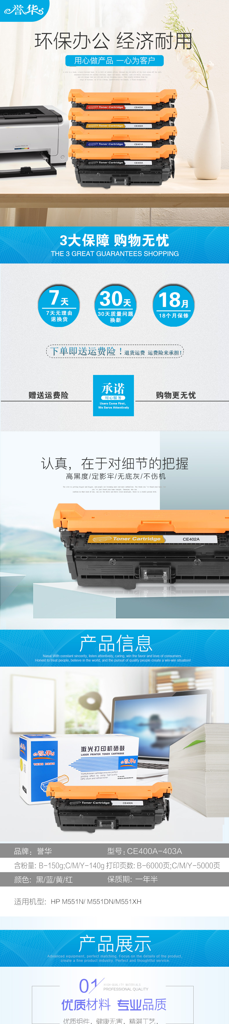 誉华打印机耗材彩色硒鼓CE400-403A适用HP M551N/ M551DN/M551XH等 黄色 自营