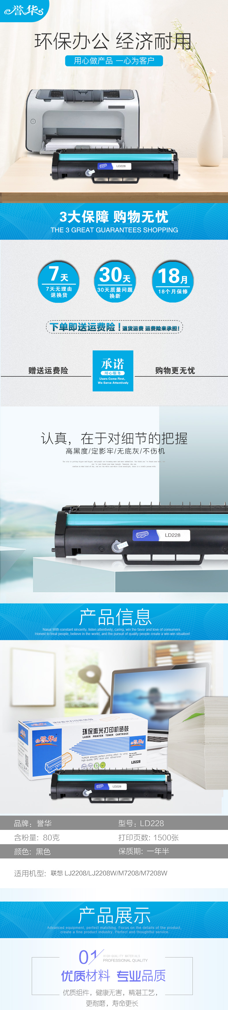 誉华打印机硒鼓LD228鼓适用联想 LJ2208/LJ2208W/M7208/M7208W等 黑色 自营