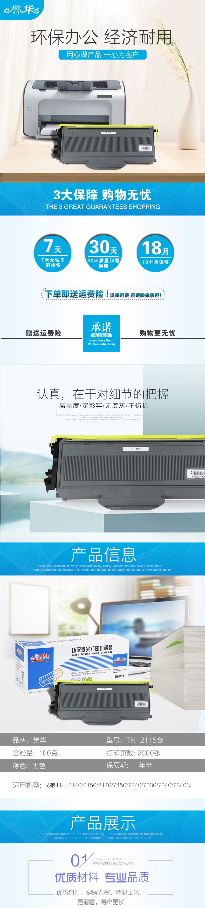 誉华TN-2115粉仓适用兄弟 HL-2140/2150/2170/7450/7340等 黑色 自营