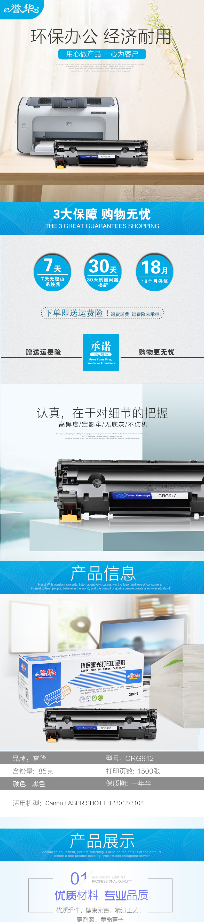 誉华硒鼓 CRG912适用于Canon LASER SHOT LBP3018/3108打印耗材 黑色 自营