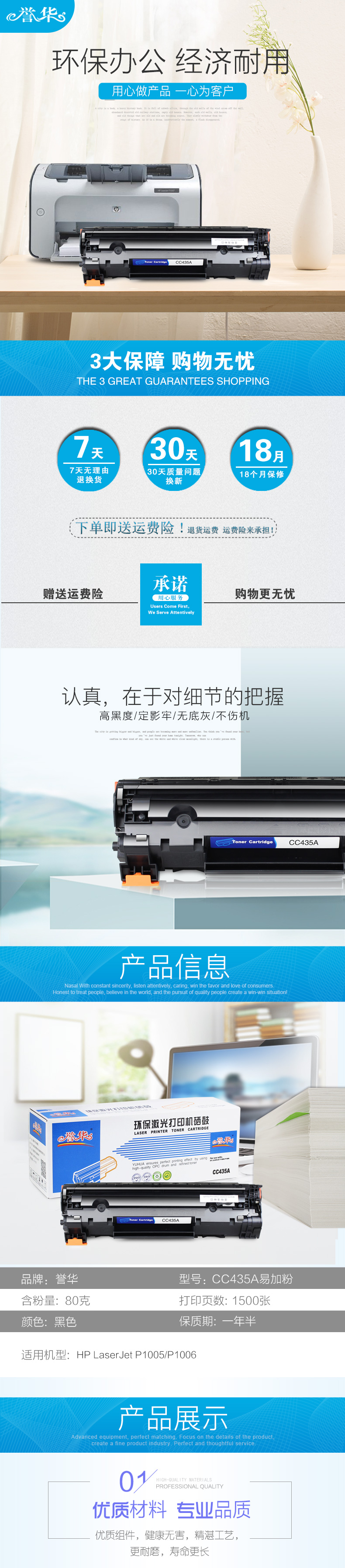 誉华HP LaserJet P1005/P1006打印机硒鼓黑色HP CC435A 黑色 自营